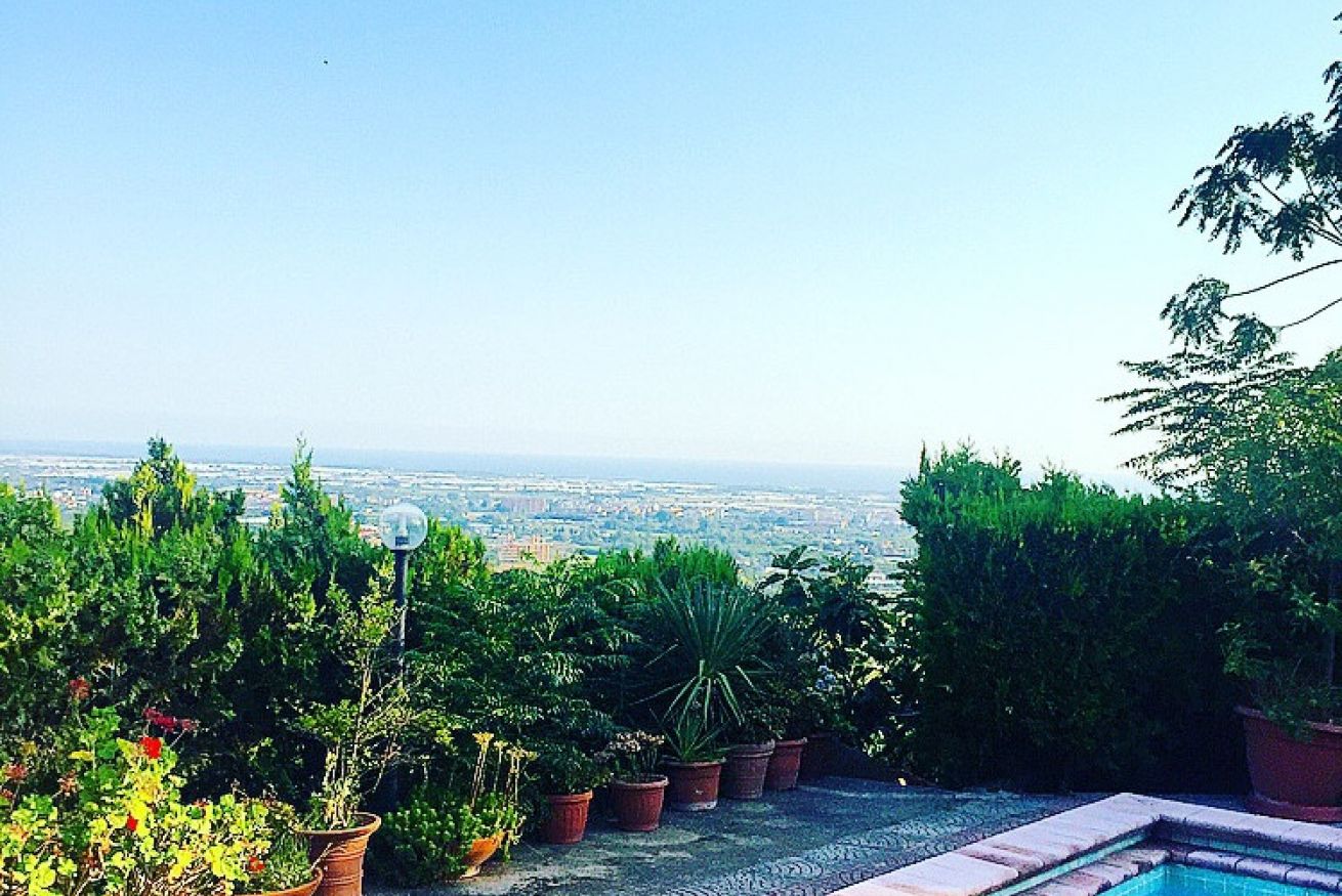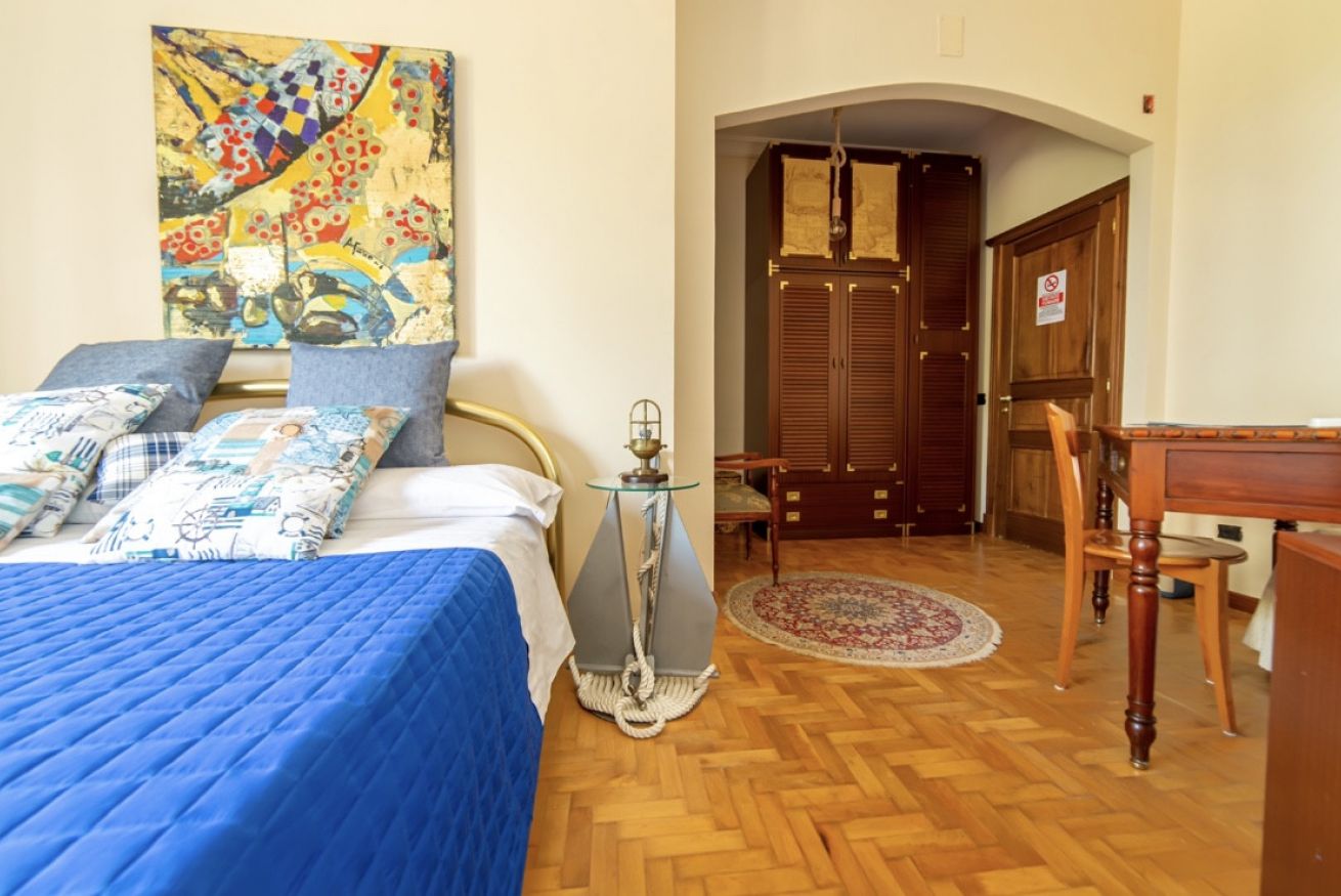 Letto matrimoniale e letto singolo, scrivania con poltrona, bagno privato, vista piscina e panorama, sala colazione in comune e veranda in comune.